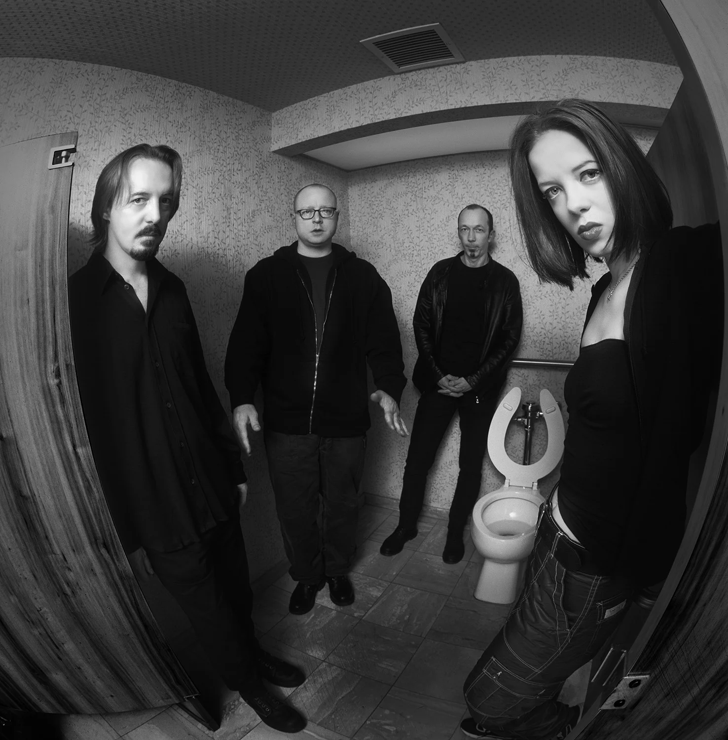 The only unexpected moment came while setting-up a shot looking down into an elevator with the band looking straight up. I was standing precariously on top of the car looking down while straddling a gap where we had removed a ceiling panel. Just as I leaned on the wall to hand down some polaroids for the band to approve the elevator jolted as it started moving up. The rough concrete wall ripped my shirt and scraped up my shoulder causing everyone to agree that maybe this was a bad idea. The bathroom photo was “Plan B”.